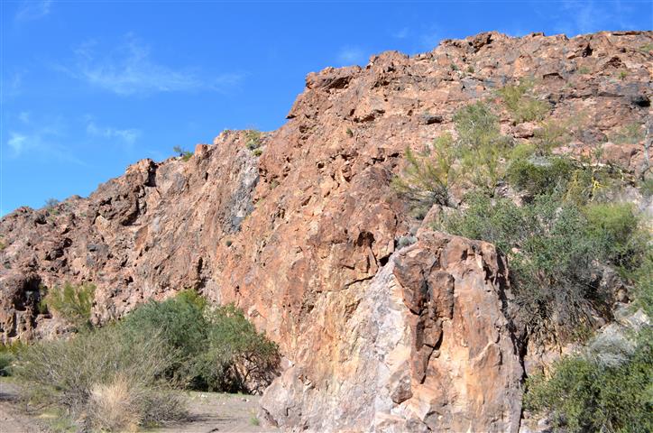 We head out into the desert on Fridays with a group of other Jeeps on a different route each week. Here we stopped to see what they call an Indian footprint in the stone. If you use your imagination, you can make out some toe prints in the middle of the picture here. Not sure I believe that you could leave a footprint in solid rock, but it makes for an interesting story.